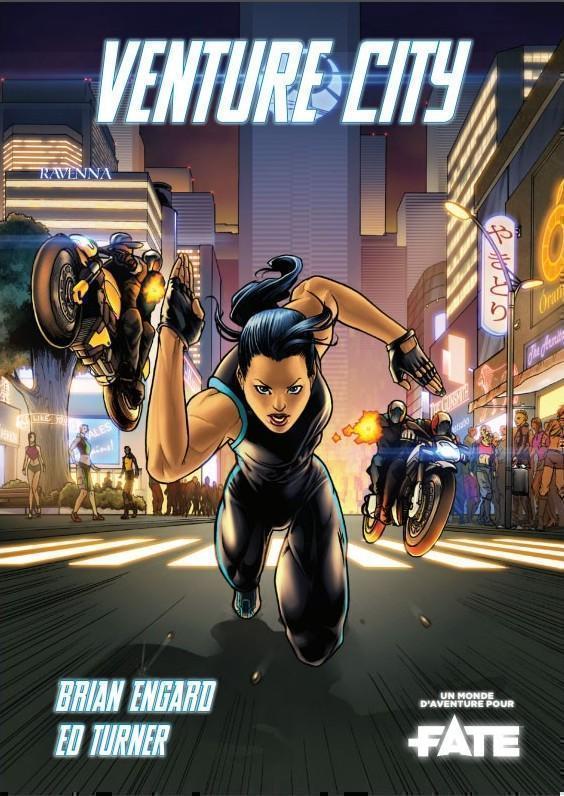 Ce n’est pas prudent de s’aventurer à Venture City Dans un futur proche, corporations sans scrupule et gangs impitoyables vendent littéralement des superpouvoirs. Des héros corpos aux super vilains dont parlent les infos, en passant par les petits poissons qui tentent de cacher leur pouvoir, les super héros sont partout. Apportez-les à votre table de Fate en un seul volume, comprenant les Venture City Stories et les Venture City Powers, écrit par les fameux Brian Engards et Ed Turner