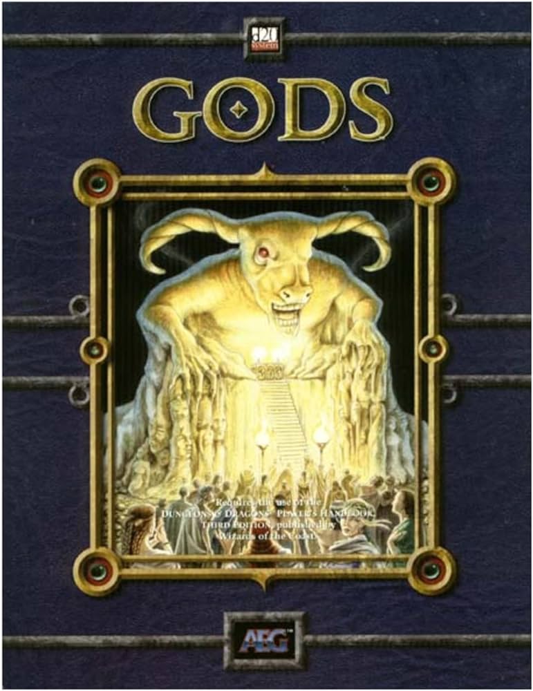 "Gods" est un supplément sur les religions et les divinités des races de monstres couramment utilisés dans les univers D20 system d’approche médiévale-fantastique. Le concept de l’ouvrage s’inspire, de l’aveu des auteurs, de celui de Touched by the Gods.