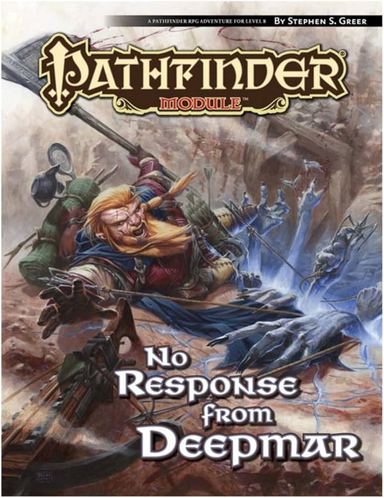 A hundred miles off the Chelish coast lies the remote island of Deepmar, where the House of Thrune sends prisoners to work in crystal mines, wresting valuable spell components from the depths of the earth. A month ago, all contact with the penal colony ceased, and now someone must discover what mysterious fate has befallen the prisoners and guards of this isolated mining operation. The abandoned colony shows no signs of struggle yet something is clearly not right : Herds of animals lie mutilated in the surrounding fields. The savage beasts of the island have run amok inside the compound. And the silent, gaping mines—each named for a different layer of Hell—lead to new threats beyond anyone’s imagining. As the PCs explore the island in search of the missing miners and their jailers, what they discover may unhinge their very minds. If left unchecked, the new masters of Deepmar could bring about a new era of madness for all of Cheliax—and beyond.