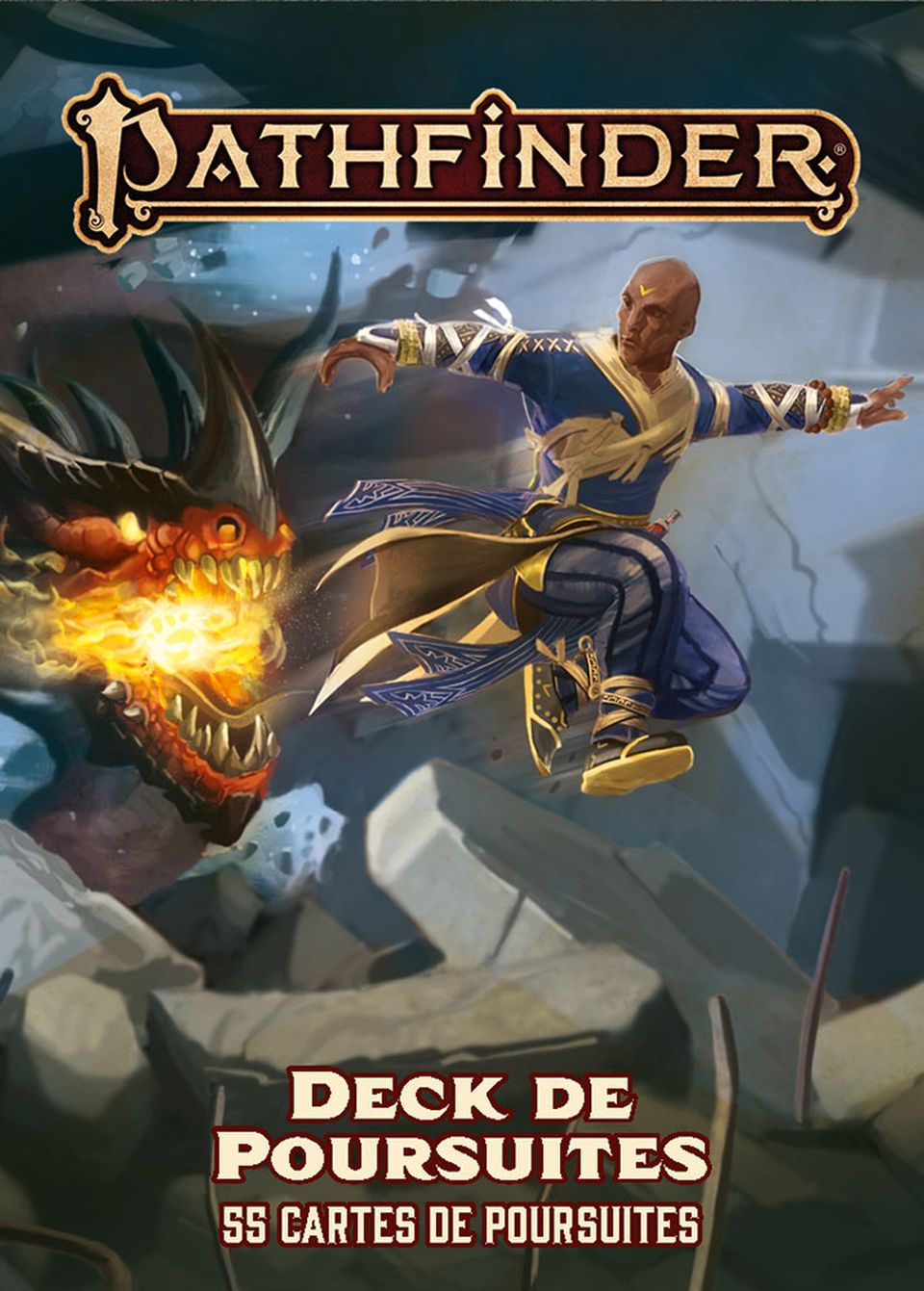 LA COURSE COMMENCE ! Que vous soyez le chasseur ou la proie, les cartes de poursuites donnent plus de poids aux choix effectués lors de la Poursuite. Chacune de ces magnifiques cartes illustrées en couleur présente un obstacle à surmonter, qu’il s’agisse d’un redoutable piège, d’un ours en colère ou d’un festival animé. Ce deck comporte les règles complètes pour gérer une poursuite dans les rues d’une ville, les tunnels d’un donjon ou des étendues sauvages, alors vous ne serez jamais pris au dépourvu, où que vos aventures vous entraînent !