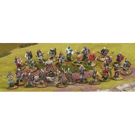 Livrées avec toutes les armes et boucliers appropriés, ainsi qu’un socle en plastique Renedra de 25 mm pour chaque figurine (40 mm pour le seigneur de guerre).