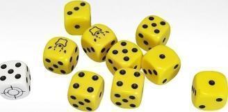 9 dés spéciaux Jokers (avec le symbole de faction sur la face 6), jaune et noir.