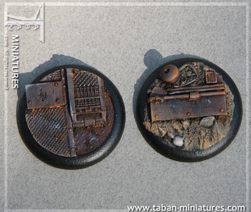 4 bases très détaillées en résine. Diamètre 40mm avec bords arrondis.