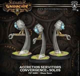 Accretion servitors are indispensable on the battlefield due to their versatile suite of semi-autonomous repair procedures. They carry a small array of mechanikal tools that enable them to provide temporary fixes to clockwork vessels and vectors in the heat of battle. These quick repairs can mean the difference between victory and defeat.