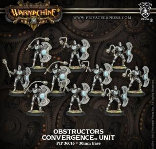 Having achieved the first step in their greater journey among the Convergence by having their souls installed in intricate clockwork vessels, obstructors know neither fatigue nor pain. In battle their shields interlock through an intricate mechanism of gears to present an unbreakable steel wall to their enemies. They serve as the primary cogs around which the greater Convergence army is ordered.