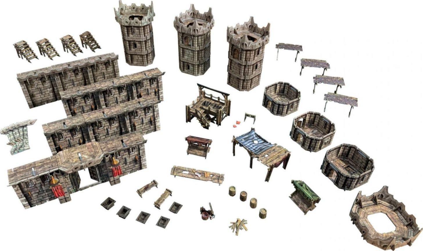 – 4 Citadel Towers : 24 Assorted Wall Sections, 16 Assorted Floor Tiles, 8 Parapet Sections, 32 Parapet Clips, 8 Doors/Blanking Plates