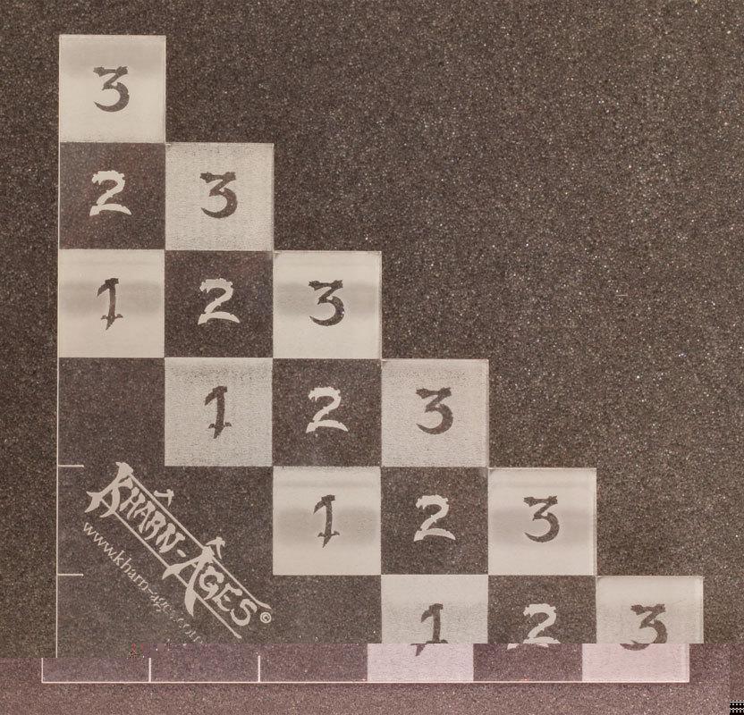 Le Gabarit de couvert est très pratique pour déterminer les bonus de couvert octroyés aux figurines dans un corps à corps ou derrière un élément de décor. Comme indiqué "P37." du livre de règle, il vous suffit de comparer la hauteur du couvert (que vous visualisez facilement par transparence avec le gabarit) à la stature de la figurine concernée, le résultat indiqué à l’intersection de ces 2 valeurs indique le bonus de couvert. Si le croisement n’est pas dans le gabarit le bonus sera de +4, s’il se trouve dans l’angle non numéroté du gabarit, aucun bonus n’est appliqué.