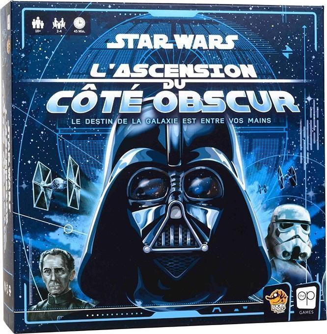 Star Wars : L’Ascension du coté obscur est un jeu de cartes et de dés coopératif inspiré des événements qui ont précédé et traversé Star Wars : Un nouvel espoir. Dans le jeu, les joueurs doivent oeuvrer ensemble pour recruter des rebelles et empêcher la construction de l’arme ultime, l’étoile de la mort. Les joueurs doivent coordonner leurs efforts pour recruter des personnages emblématiques, tels que C-3PO, R2-D2, Obi-Wan Kenobi, l’amiral Raddus et Han Solo, et organiser leurs attaques pour contrecarrer la montée en puissance de l’Empire qui vise la domination galactique. Le plateau de jeu principal comprend un buste de Dark Vador en 3D sculpté et pré-peint. Dark Vador commande aux agents impériaux et son objectif est d’éliminer les rebelles et de rendre l’étoile de la mort opérationnelle. Pendant ce temps, dans une course contre la montre, les joueurs doivent utiliser la Force alors qu’ils dirigent leurs efforts rebelles à travers différents endroits de la galaxie, y compris Scarif, Eadu et Jedha. Pour restaurer la liberté de la galaxie, les rebelles doivent vaincre suffisamment de soldats impériaux avant que l’Empire ne puisse achever la construction de l’Étoile de la Mort ou que trop de rebelles tombent au combat.