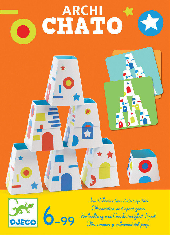 Le premier joueur qui reproduit à l’identique le château de la carte avec ses cônes remporte la manche. Il faut être observateur et faire preuve d’adresse car tous les cônes se ressemblent !