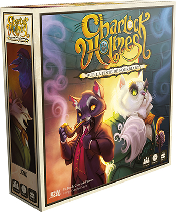 Fourriarty terrorise Londres, et c’est à Charlock Holmes qu’il revient de l’arrêter avant qu’il ne mette ses plans à exécution et ne file à l’anglaise ! Il aura pour lieutenant les jeunes recrues de Scotland Miaow… Les joueurs ! Charlock Holmes est un jeu de déductions et d’enquête. Chacun doit deviner l’heure indiquée sur son suspect (de 1 à 12), ou l’espèce de celui-ci (oie, rat, corbeau, chien…) Et seuls les autres participants peuvent voir qui est le suspect ! Ce sera à eux de dire quel indice est correct ou non, sans plus de détails. Chaque enquête résolue rapporte un ou deux jetons de points, selon le nombre d’indices découverts.
