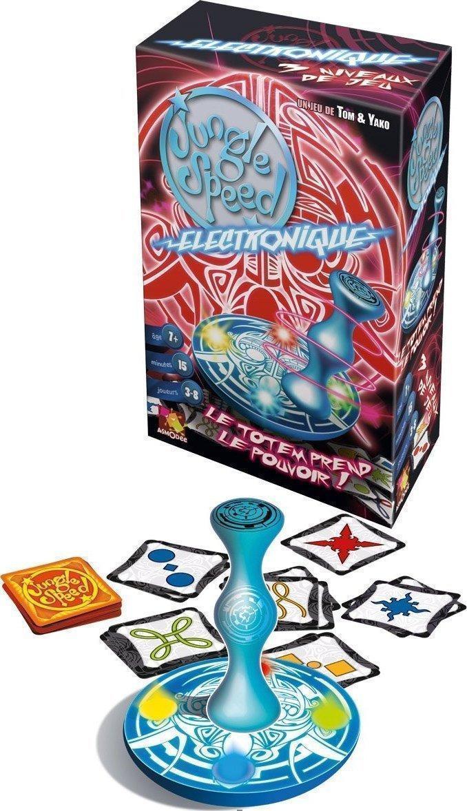 Cette version de "Jungle Speed" propose 3 niveaux de difficulté et introduit dans le jeu une base électronique. En plus d’observer, il faudra maintenant écouter attentivement car désormais, une voix vous dicte plus d’une dizaine d’actions spéciales ! Gare aux changements de sens et aux « fausses indications » qui vous mèneront sur de mauvaises pistes !