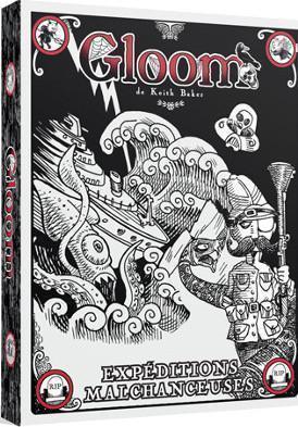 Expéditions Malchanceuses ajoute d’odieuses odyssées à Gloom grâce à des cartes Expédition qui envoient la table tout entière dans les lieux les plus répugnants du monde, ainsi qu’à une pile de sinistres nouveaux Modificateurs, Événements et Morts Prématurées.