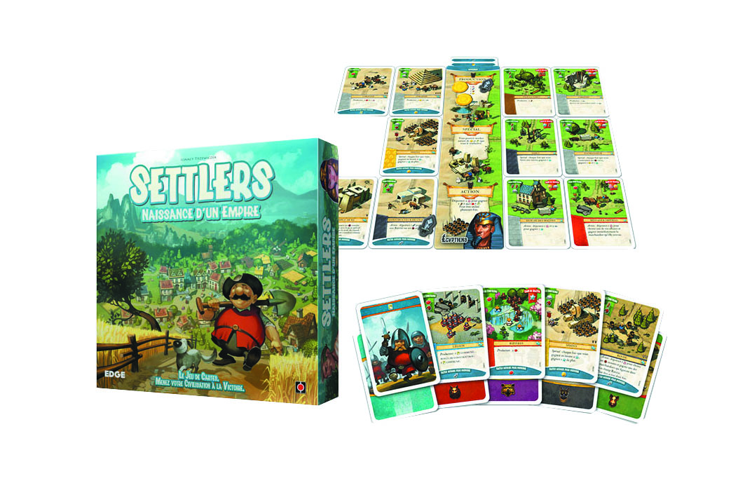 Settlers : Naissance d’un Empire est un jeu de cartes dans lequel chaque joueur prend le contrôle d’une de ces quatre puissantes civilisations. Vous avez cinq rounds pour explorer de nouvelles terres, construire des bâtiments, produire et échanger des ressources, vaincre vos ennemis, et ainsi marquer des points de victoire.