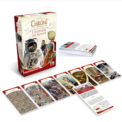 ChroniCards – Histoire du Monde est un jeu de cartes de connaissances pour améliorer et tester sa culture générale. « Pour briller en société ou s’amuser entre amis. » La fondation de l’Empire mongol, avant ou après le début des croisades ? D’ailleurs, savez-vous pourquoi l’Empire mongol est si célèbre ? De l’apparition de l’écriture (vers -3300) au premier pas de l’Homme sur la Lune (1969), retrouvez dans ce titre une sélection de 60 événements majeurs qui ont marqué les civilisations. Avec les ChroniCards, enrichir sa culture générale n’a jamais été aussi simple.