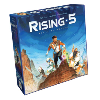 Il y a longtemps, très longtemps, sur la planète éloignée d’Asteros, un ancien Roi avait confiné des monstres innommables derrière un portail scellé par 4 Runes Divines. Le savant sage ORAKL a demandé au Conseil des Planètes Unies de l’aide et quatre de leurs meilleurs agents - EKHO, HAL, ELI et NOVA ont été envoyés. Leur nom de code "Rising 5", ces héros sont le seul espoir d’Asteros. S’ils veulent sauver ce monde, ils devront trouver les runes perdues et sceller le portail une fois de plus. Mais de nombreux dangers les attendent sur cette planète autrefois paisible… Rising 5 est un jeu coopératif de déduction et d’aventure piloté par une application numérique. Les joueurs doivent retrouver les Runes perdues, avant qu’une puissance maléfique ne dévore la planète.