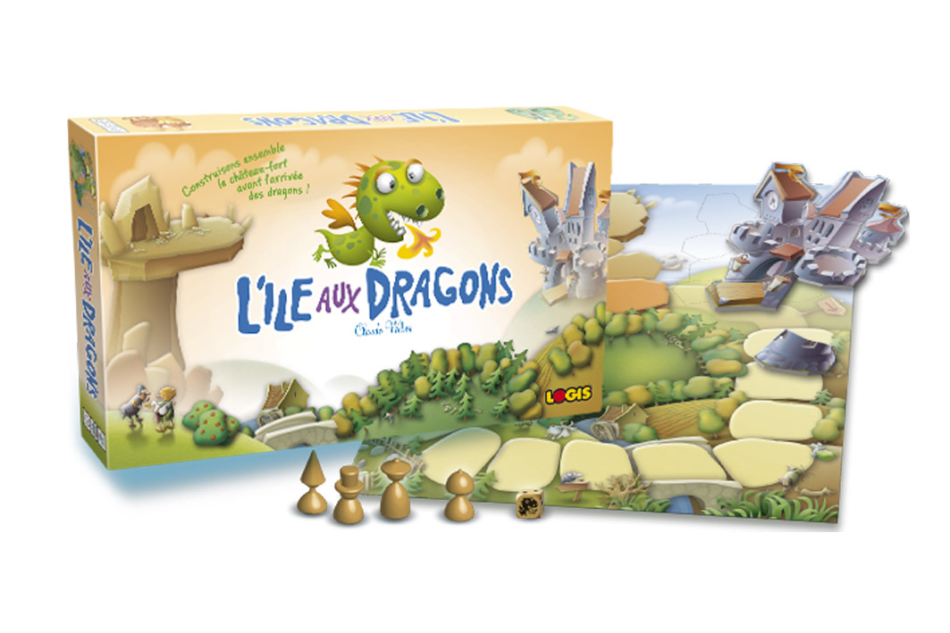 On place les dragons dans l’île, et les pièces du château sur les cases jaunes. Chaque joueur joue le dé à son tour, et avance en partant de la plage de 1,2 3 ou 4 cases. S’il tombe sur un élément du château, il le garde pour l’emmener à la plage (1 élément à la fois). Plus tard, s’il tombe sur un dragon, il doit se sauver dans le bois.