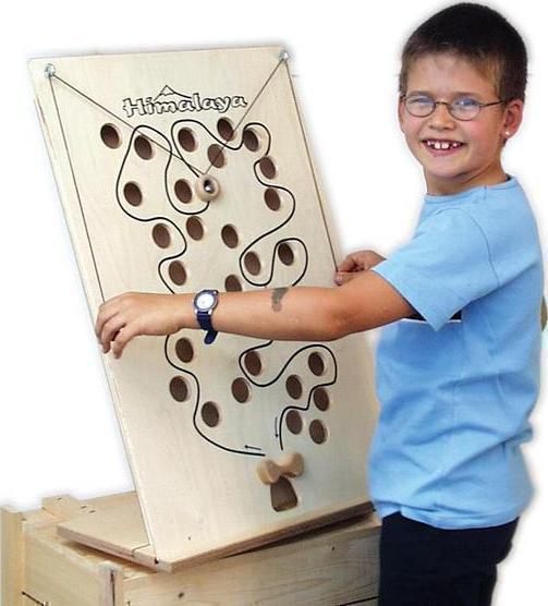 Bille grimpeuse ou Himalaya : Un jeu pour la coordination des deux mains. Un anneau supportant une bille est maintenu contre le tableau perforé par deux ficelles. On le déplace en manœuvrant l’extrémité des ficelles afin de suivre la ligne dessinée sur le plateau et qui passe dangereusement entre les perforations du plateau. Attention aux gestes trop brusques ! La bille pourrait passer par un trou.