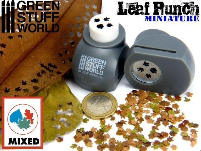 Perforatrice de Feuilles de Modélisme - GRIS Perforatrice pour faire des feuilles de modélisme compatibles avec des échelles de 1:35, 1:43, et 1:48 (54mm, 32mm, et 28mm). Vous pouvez utiliser différents types de papier et autres matériaux. Nous vous recommandons d’utiliser des feuilles séchées de différentes couleurs. Feuilles naturelles doivent être traitées pour garder les couleurs. Il existe plusieurs techniques pour atteindre esta feuilles colorées sans effort. Elles peuvent aussi être peintes. INSTRUCTIONS : 1. Trouvez des feuilles sèches dans le parc à côté de votre maison. 2. Laisser les feuilles sécher, dans un livre, pour garder les couleurs. 3. Perforez les feuilles 4. Utilisez de la colle blanche PVA pour fixer les feuilles à votre diorama.