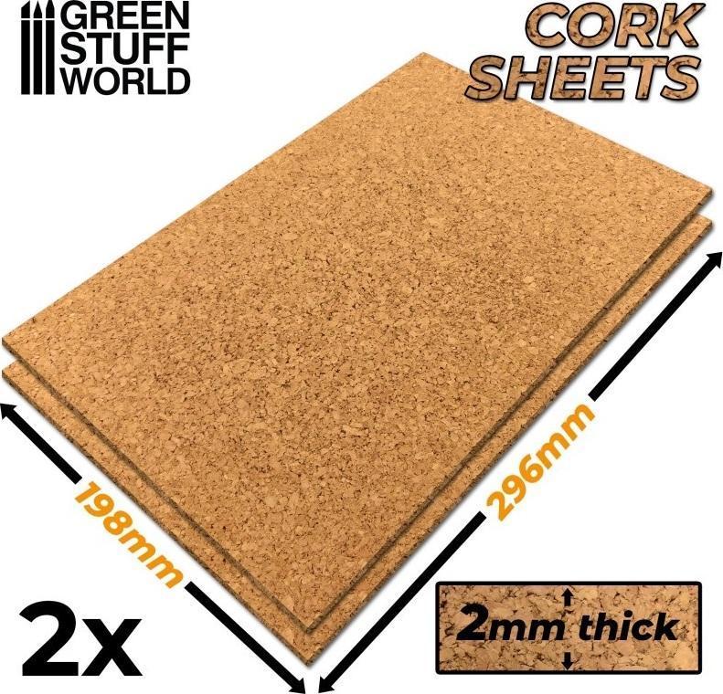 Les plaques de liège sont très utiles pour les socles de figurines, les dioramas et les décors. Elles peuvent être utilisées de plusieurs façons pour : - Donner simplement du relief à votre décor - Créer des socles de jeu rapidement et facilement - Créer des décors rocheux : une fois peintes, les plaques de liège représentent des amas rocheux et des promontoirs tout à fait convaincants - Créer des petites roches : il est très facile d’effriter les plaques pour obtenir des petits rochers texturés réalistes. - Sous-couche idéale pour le modèle ferroviaire paysage Dimensions : 198x298mm