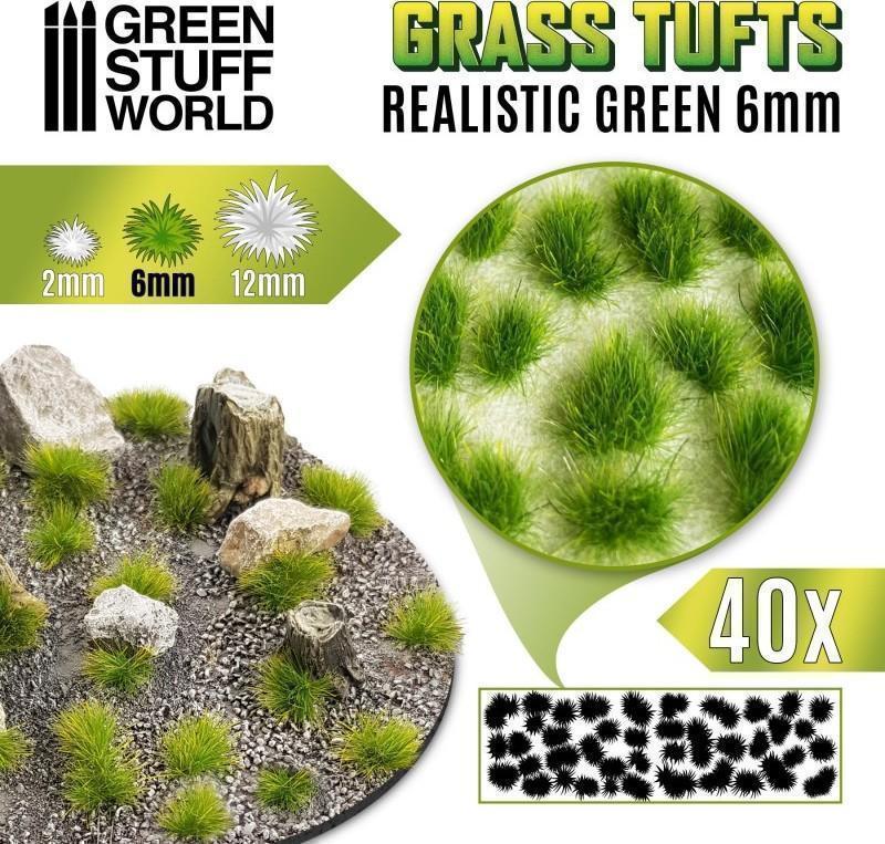 Touffes d’herbe - 6mm - Auto-Adhésif - VERT RÉALISTE Ces touffes d’herbe très réalistes sont parfaites pour les socles de figurines, les dioramas et les décors. Elles ont été conçues pour tenir à la verticale, ce qui ajoute une dimension supplémentaire aux socles de vos figurines. Une fois que vous avez fini de peindre vos figurines, simplement détachez une ou plusieurs touffes de la plaque avec des pincettes, et collez les directement sur votre décor. Ne oubliez que, même si elles sont auto-adhésif, un peu Colle PVA peut être nécessaire dans certains surfaces inégales pour une solution permanente. Type d’herbe : mélanges de fibres de Nylon Flock Dimensions de la Feuille:4x15cm Hauteur : environ 6mm Nombres de pièces : 40 Touffes