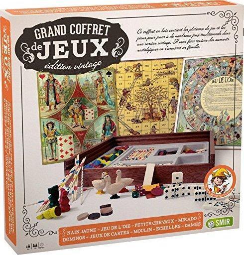 Ce coffret contient les plateaux de jeu et les pions pour jouer à de nombreux jeux traditionnels dans une version vintage. Il vous fera revivre des moments nostalgiques en s’amusant en famille.