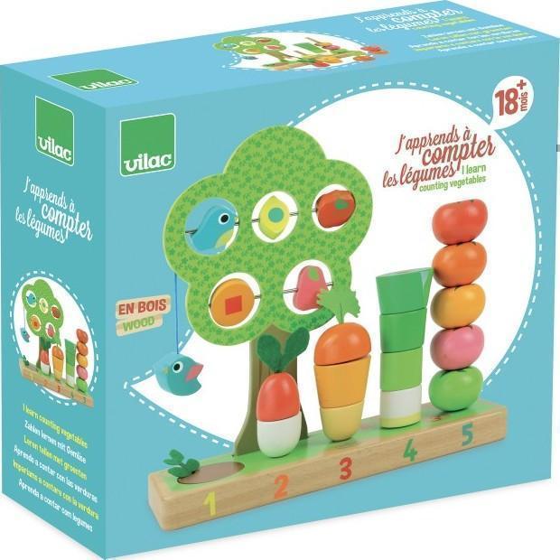Jeu d’éveil idéal pour apprendre à compter en s’amusant avec de jolis légumes à empiler… et une pomme de terre à déterrer ! Au verso de chaque élément se cache une forme à découvrir.
