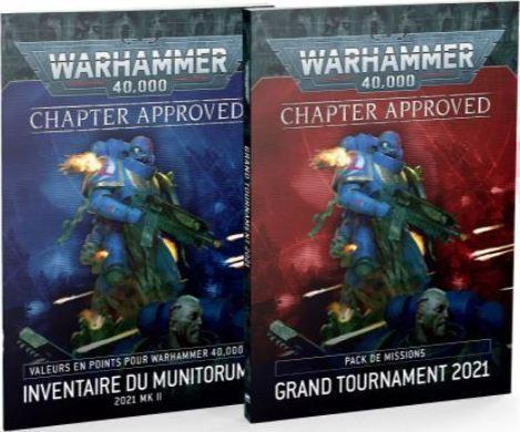 L’édition de cette année de Chapter Approved est la boîte à outils ludique incontournable pour tous les amateurs de Warhammer 40,000 en jeu égal. Que vous soyez habitué des tournois, ou simplement soucieux de toujours jouer des parties équitables, voilà le supplément essentiel pour le jeu égal dans cette édition de Warhammer 40,000. Vous trouverez dans ce livre de 96 pages sous couverture souple : - Deux packs de missions, à savoir neuf scénarios pour les batailles au format Incursion, plus autant pour le format Force de Frappe, tous conçus de sorte à varier les défis pour les joueurs. - Des indications pour mettre en place et jouer une partie de jeu égal ou de compétition au niveau Grand Tournament, en ce qui concerne les dimensions suggérées du champ de bataille, la limite de temps et la définition optimale des objectifs secondaires. - Des objectifs secondaires mis à jour. Certains sont entièrement inédits, d’autres ont été ajustés, ou encore il y a eu révision des Points de Victoire qu’ils rapportent. - Et bien davantage… En outre, vous disposerez d’un livret de 56 pages à part – l’Inventaire du Munitorum MkII – contenant toutes les valeurs en points de jeu égal mises à jour, patiemment équilibrées et ajustées avec le concours des organisateurs des plus grands tournois et de nos testeurs de jeux. Que vous désiriez porter votre jeu égal au niveau supérieur, ou vous tenir à jour des valeurs en points les plus récentes pour l’ensemble des factions, vous trouverez votre bonheur dans Chapter Approved, un guide approprié à l’incroyable nouvelle édition de Warhammer 40,000. Note : les valeurs en points indiquées dans l’Inventaire du Munitorum 2021 MkII pour les Thousand Sons et les Grey Knights ne sont pas les bonnes, en raison d’un retard de la sortie de leur codex respectif. En attendant qu’ils paraissent d’ici fin 2021, vous pouvez télécharger les valeurs en points à jour pour les Thousand Sons et les Grey Knights via le PDF de l’onglet téléchargements. Ces valeurs en points couvrent l’ensemble des unités des deux factions et sont conçues pour servir en accompagnement des codex actuels, en attendant la publication des nouveaux livres.