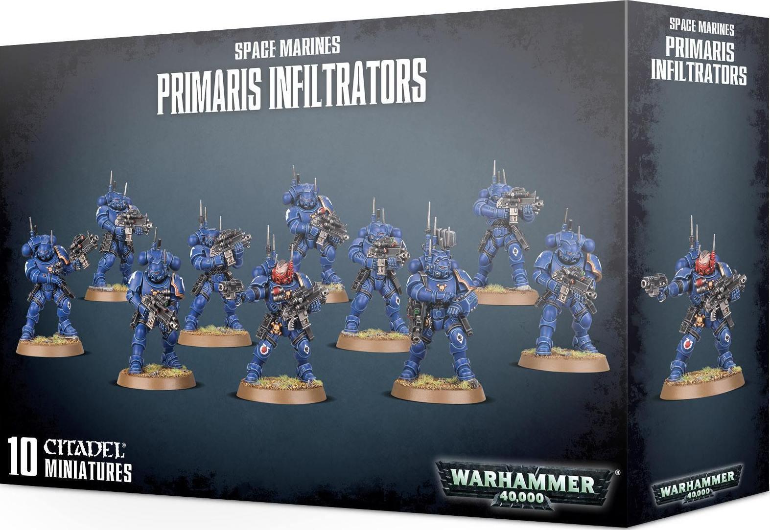 Vifs et légers dans leur armure Mk X Phobos, les Primaris Infiltrators ont pour tâche de perturber les transmissions adverses et de saboter les cibles qui se présentent. Le premier signe qu’en voit l’ennemi est la cascade de fumée asphyxiante quand les Infiltrators lancent un barrage de grenades pour masquer leur progression. Alors que les défenseurs tentent de percer le brouillard, les Space Marines abattent leurs cibles par des salves disciplinées, éclairant leurs victimes grâce aux auguroscopes de leurs carabines bolters d’élite.