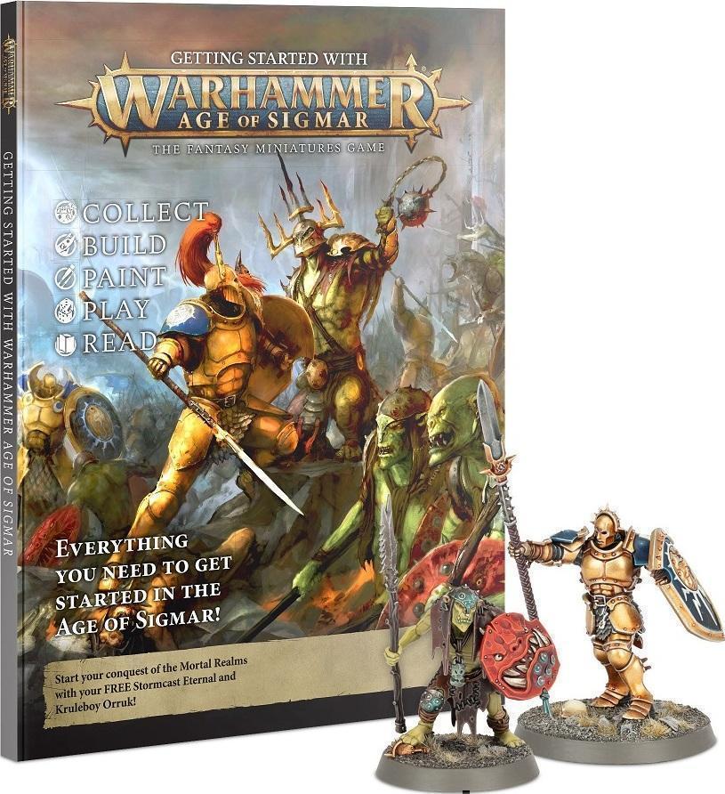 Warhammer Age of Sigmar est un jeu stratégique sur table de guerre fantastique. Que vous commandiez aux vaillants Éternels de l’Orage, aux retors Kruelboyz Orruks, ou à une des nombreuses autres factions qui se disputent la suprématie sur les Royaumes Mortels, vos batailles dans ces derniers promettent d’être riches en action. Collectionnez votre armée, assemblez et peignez les figurines, puis mesurez-vous à vos adversaires pour voir qui est le meilleur général. Ce magazine vous aidera à tout savoir pour explorer le monde périlleux et exaltant de Warhammer Age of Sigmar. Votre aventure commence ici ! Vous trouverez dans ce magazine de 112 pages une présentation du contexte ravagé par la guerre de Warhammer Age of Sigmar, où quatre Grandes Alliances se disputent le contrôle des huit Royaumes Mortels. Il est ensuite question des nombreux aspects du hobby Warhammer Age of Sigmar, à commencer par la collection d’armées de splendides figurines Citadel, pour ensuite les peindre dans les couleurs de votre choix, et enfin les faire combattre sur une table de jeu au cours de parties passionnantes. Ce magazine comprend aussi les figurines plastique suivantes à assembler : - 1x Vindictor des Éternels de l’Orage (fourni avec un socle rond de 40mm) - 1x Éventreur des Clans Guerriers Orruks (fourni avec un socle rond de 32mm) Les deux figurines sont conçues pour se dégrapper sans pinces, et s’emboîter sans colle, de sorte qu’on peut les assembler en quelques minutes. Ces miniatures sont fournies non peintes et nécessitent un assemblage.