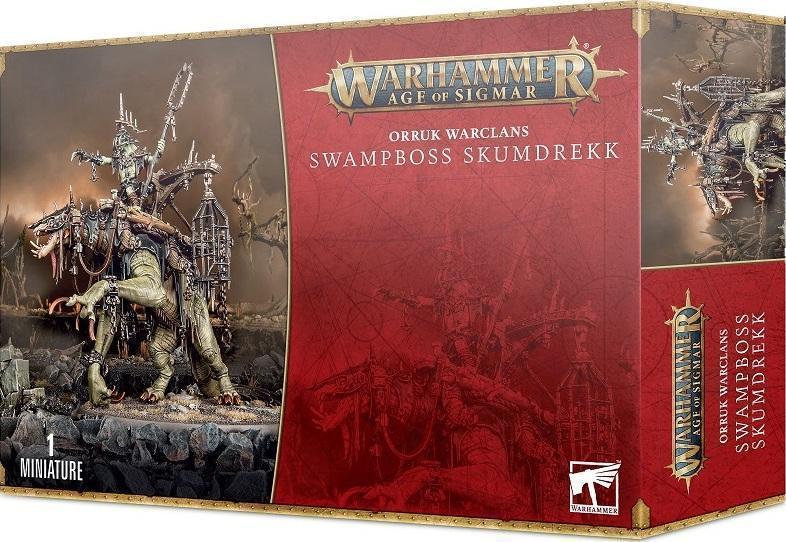 De tous les Boss Karrach’, Skumdrekk est le plus ignoble et le plus ruzé, ce qui lui confère une certaine notoriété chez les Kruelboyz de Ghur. Propriétaire de la Ménagerie de Grandbourbier, une étendue de mangrove asséchée qui sert de geôle à des dizaines de bêtes aussi inhabituelles que méchantes, le Vasoboss Skumdrekk fait figure de légende vivante. Il chevauche Griffkigliss, une Bête Faukarde à la férocité peu ordinaire qu’il dompta alors qu’il n’était qu’un jeune orruk. Skumdrekk et Griffkigliss incarnent la ruze guerrière. Ils jaillissent de leur cachette lors des escarmouches, enlèvent des brassées de malheureux et massacrent quiconque résiste dans une grêle de coups de chopeur dentelé, de griffes croûtées de venin et de mâchoires nauséabondes. Force conséquente sur le champ de bataille en plus d’être un habile commandant Kruelboy, Skumdrekk est en outre un parieur réputé, fréquemment accompagné au combat par son Ékipe ki Tient les Paris, une bande de hobgrots qui misent prestement sur lequel de leurs alliés tombera le premier. Ce kit plastique en 66 composants permet d’assembler un Vasoboss Skumdrekk, fourni avec un grand socle ovale. On peut sinon assembler le tout sous forme de Boss Karrach’ sur Bête Faukarde. Cette figurine est fournie non peinte et nécessite assemblage – nous recommandons d’employer la Colle Plastique Citadel et la peinture Citadel.