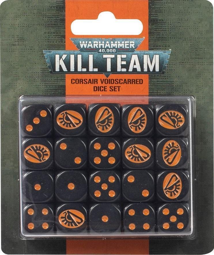 Pratiquant des tactiques qui confondent et désemparent leurs adversaires, les Corsaires Néantis unissent les Aeldari sous l’étendard du pillage de richesses. Montrez votre dévouement à la voie du Corsaire avec ces dés à thème pour Kill Team. Ce set comprend 20 dés à six faces de 16mm de côté. Ils sont moulés en noir avec les points en orange, et l’icône de Corsaire des Pillards Sorciers en guise de face 6.