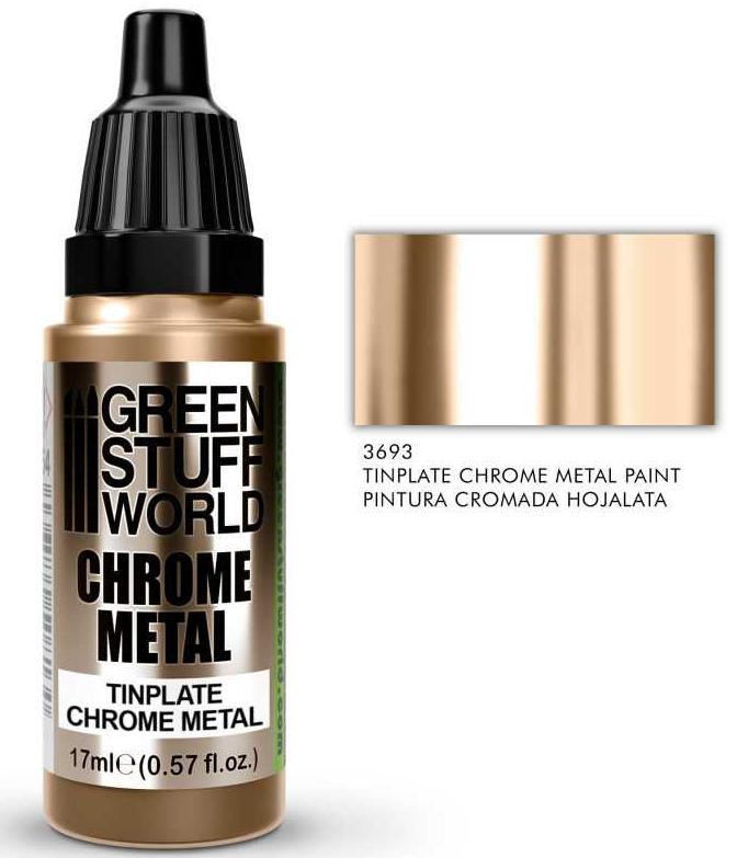 Peinture métallique à base d’alcool pour obtenir un effet imitant le reflet métallique d’une surface chromée semblable à un miroir. Bien qu’il soit conçu pour être utilisé avec un pinceau, il permet également son application à l’aérographe, il peut être appliqué sur n’importe quelle surface quelle que soit sa couleur, et doit toujours être nettoyé avec de l’alcool. Le temps de séchage qui peut varier en fonction des conditions environnementales et de l’épaisseur de la couche appliquée, mais peut généralement varier entre 5 et 30 minutes, il est donc recommandé de protéger la surface lors de son séchage. L’effet miroir peut être réduit voire perdu si des encres ou des vernis sont ajoutés sur le dessus. Cette peinture, lorsqu’elle est fraîche, a la capacité de dissoudre la même peinture déjà séchée en dessous, il est donc recommandé de l’appliquer en un seul passage, et sur des surfaces pas trop grandes.