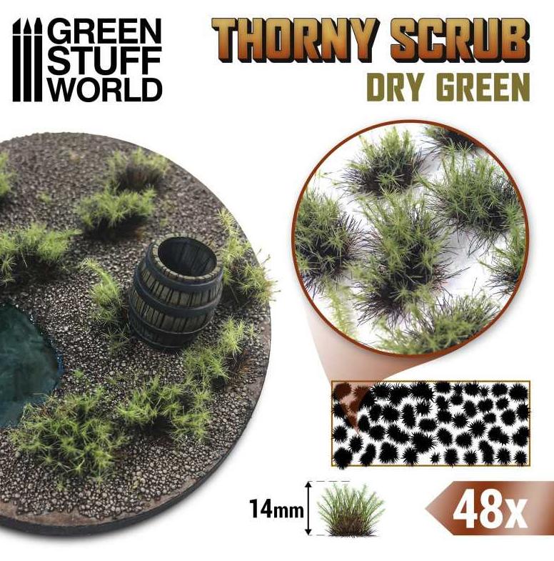 Décorez vos bases ou dioramas sur le thème de la science-fiction et de la fantaisie avec ces buissons uniques épineux/spiky Choisissez la couleur la plus appropriée dans la vaste collection pour donner à vos socles, bases ou décors un aspect aussi réaliste que possible. Pour les fixer, il suffit de sortir les touffes d’herbe de l’emballage avec une pince et de les fixer avec la partie autocollante. Certaines surfaces plus compliquées peuvent nécessiter un peu de colle ou de colle blanche pour une fixation permanente. Taille de la fibre : 14 mm de haut Contenu : 48 buissons