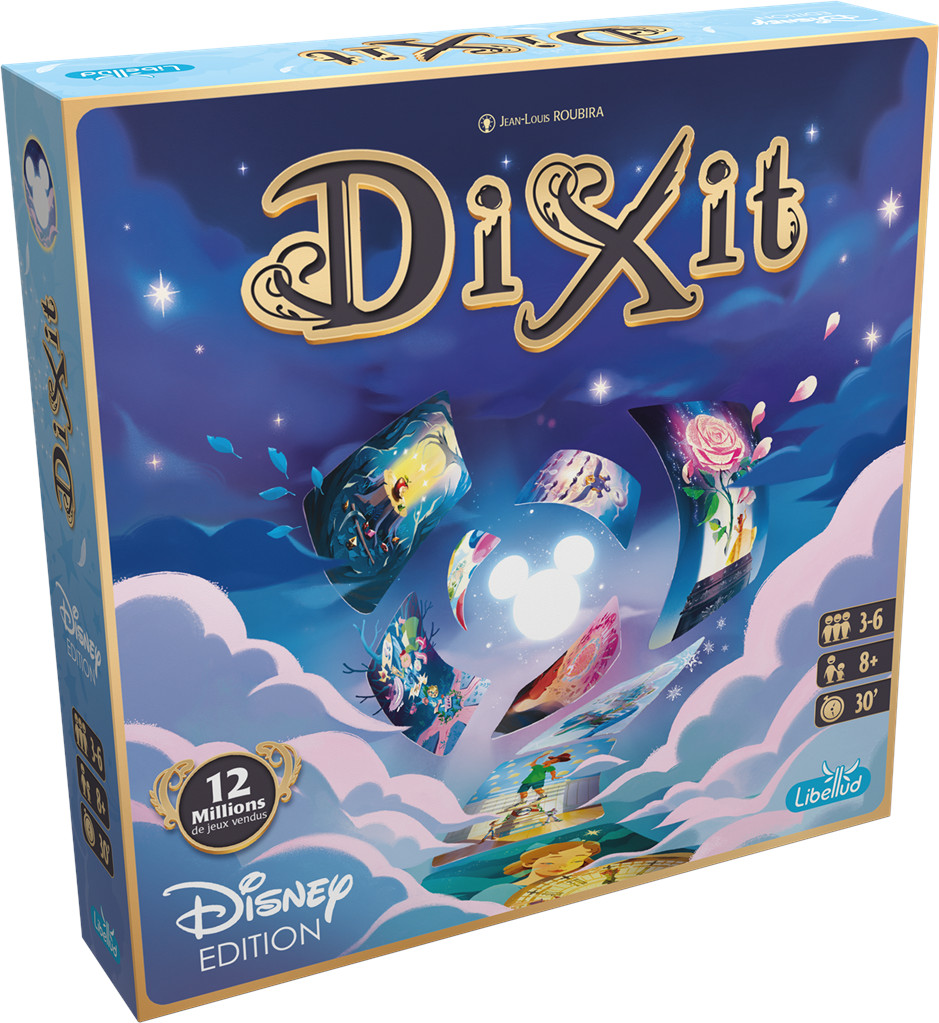 Dixit, le jeu de société onirique rencontre le plus grand studio d’animation de l’histoire ! Découvrez une nouvelle édition avec 84 illustrations oniriques inspirées par les dessins animés et films d’animation de Disney et Pixar ! Ces cartes sont compatibles avec les jeux du Dixit Universe : Stalla, Odyssey, etc. POINTS FORTS Le mariage extraordinaire entre Disney et Dixit 84 cartes inédites inspirées des univers Disney & Pixar Jeu indépendant et compatible avec les extensions Dixit