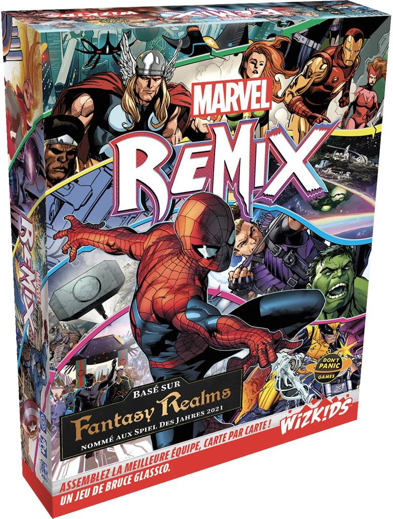 Dans Marvel : Remix, vous devez assembler la main de 7 cartes au score le plus élevé possible. À chaque tour, vous piochez des cartes des paquets Remix, Vilain ou de la zone de défausse avant de choisir une carte à défausser. Chaque carte possède sa propre force de base et peut se combiner avec d’autres cartes de votre main. En fin de partie, vous additionnerez la force de base et les points bonus de toutes vos cartes. Votre main finale doit comporter au moins un HÉROS (ou un ALLIÉ), et au moins un VILAIN, sous peine de ne rapporter aucun point. La victoire revient au joueur ayant le plus de points.