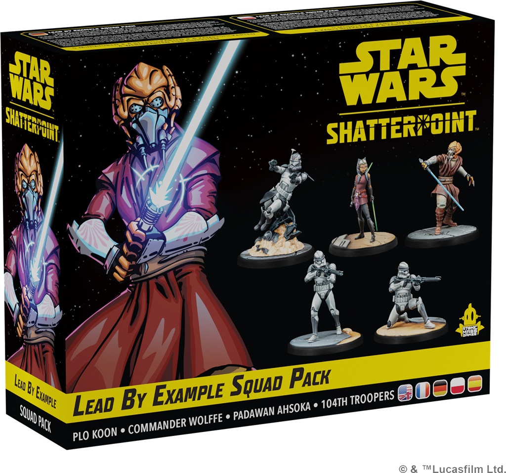 Un éminent membre du Haut Conseil Jedi rejoint le champ de bataille ! Le Maître Jedi de Kel Dor, Plo Koon, a acquis la réputation d’entreprendre de périlleuses missions au nom de la République Galactique, combattant aux côtés de légendes telles que Mace Windu. Parmi tant d’autres réalisations, il a à son actif d’avoir découvert Ahsoka Tano alors qu’elle n’était qu’une petite fille abandonnée de ses parents, l’emmenant au Temple Jedi pour commencer sa formation. Les qualités de leadership de Plo Koon lui ont valu d’être promu au rang de général et d’être placé à la tête du 104ème Bataillon, surnommé le « Wolfpack ». Assisté par Commandant Clone CC-3636, mieux connu sous le nom de Commandant Wolffe, cette célèbre unité a été impliqué dans de nombreux engagements majeurs, y compris l’élimination du navire de guerre séparatiste Malevolence. La perte de son œil droit n’a pas dissuadé le Commandant Wolffe d’exercer ses fonctions auprès de Plo Koon, jusqu’à un certain ordre 66, mais ceci est une autre histoire. Cette boîte d’escouade contient le Maître Jedi Plo Koon en unité principale, le Commandant Wolffe CC-3636 en unité secondaire, Ashoka Tano en unité secondaire également, et des troopers du 104ème Bataillon Wolfpack en soutien (2 figurines). Le tout accompagné de 4 cartes Postures de Combat, 4 cartes Ordre et 4 cartes Statistiques. Nécessite une boîte de base Shatterpoint Contenu 5 figurines (à monter et peindre), 4 cartes Ordre, 4 Cartes Statistiques, 5 cartes Postures de Combat