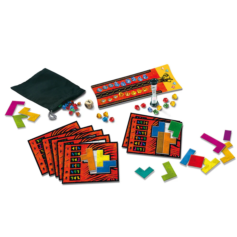 Ubongo est un jeu de puzzle géométrique rapide, addictif et facile à apprendre. Les joueurs font la course contre le chronomètre et les uns contre les autres pour résoudre un puzzle de formes imbriquées. Plus vite vous résolvez le puzzle, plus vous obtenez de pierres précieuses. Le joueur avec le trésor de pierres précieuses le plus précieux après neuf tours de résolution d’énigmes gagne ! Age : 8+ Nbre de joueurs : 1 à 4 Temps de partie : 25 min.