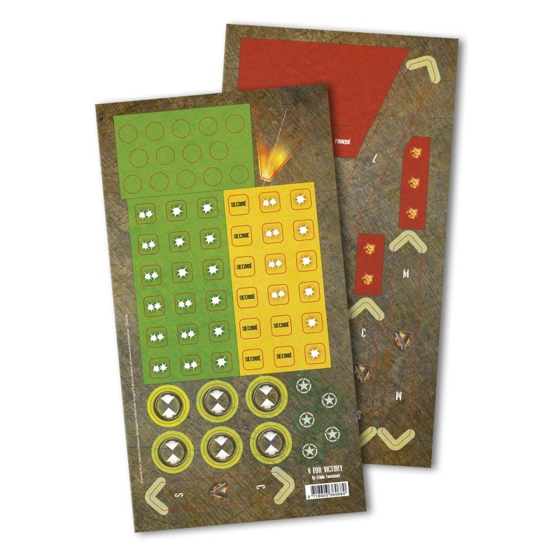 Ces deux planches de pions cartonnés contiennent tous les pions nécessaires pour V for Victory. Pions en carton épais, prédécoupés.