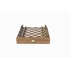 Plateau marqueté en noyer et chêne, pièces en alliage métal zinc, massives et feutrées. Cases 3x3, hauteur roi 5cm