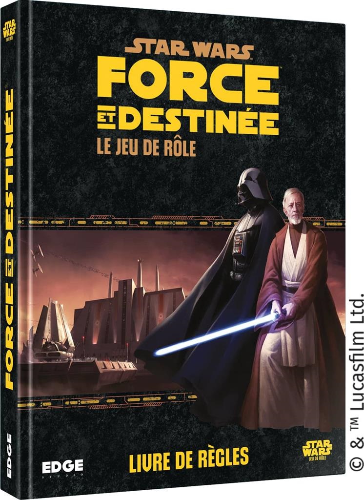 Après la destruction des Jedi, errants et sentinelles, gardiens et guerriers, arpenteurs et pacificateurs doivent apprendre seuls à utiliser la Force pour ramener la paix et la justice dans la galaxie. Engagez-vous sur la voie de la Force et embarquez dans vos propres aventures dans la galaxie Star Wars™ avec Star Wars : Force et Destinée, le Jeu de Rôle. Ce jeu de rôle complet vous permettra de vous lancer dans le combat qui oppose le côté lumineux de la Force au côté obscur, en pleine guerre civile galactique. Fabriquez votre sabre laser, libérez les malheureux et les opprimés, et affrontez en duel les effroyables agents des Sith pour rétablir l’équilibre de la Force. Vous trouverez dans ce livre de base : Un système de règles où les jets de dés ne déterminent pas seulement le succès ou l’échec, mais permettent d’enrichir la narration au cours des parties. Des règles complètes pour six carrières, dix-huit spécialités et huit espèces, permettant de créer et de développer des personnages variés. Des règles de moralité pour impliquer les personnages joueurs dans l’univers de Star Wars : Force et Destinée. Des règles de combats spatiaux, de l’équipement personnalisable, les pouvoirs de la Force, des adversaires redoutables et bien plus encore !
