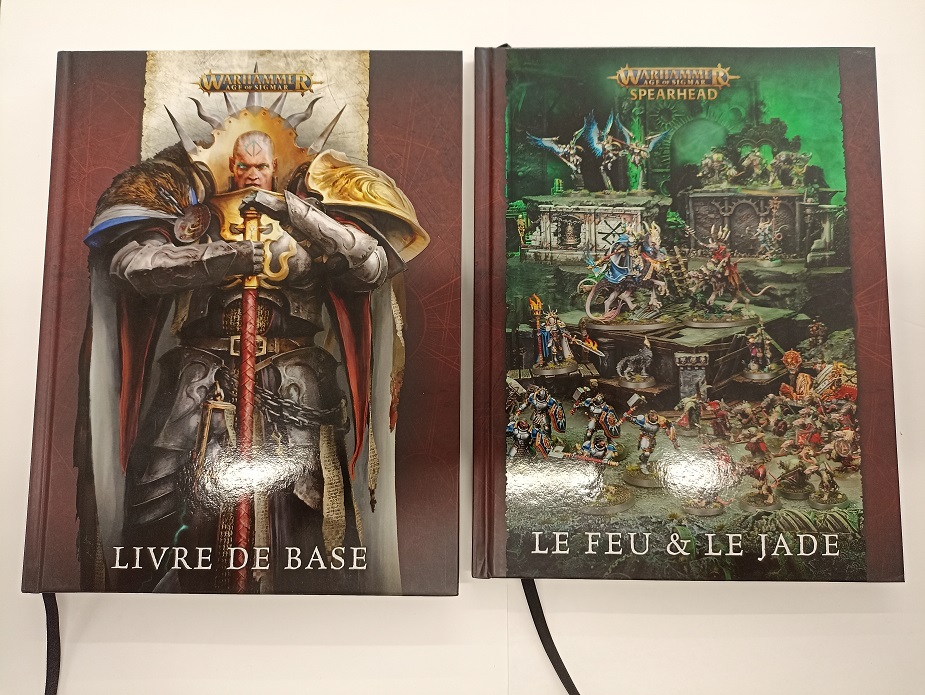 Lot des livres de règles de la boite Raz-de-Skaven. Contient : 1x Livre de Base Warhammer Age of Sigmar relié de 272 pages : Découvrez l’historique de Warhammer Age of Sigmar et apprenez à maîtriser sur le champ de bataille de magnifiques armées de vaillants guerriers, de démons déchaînés, et de bien d’autres factions. Cet ouvrage contient toutes les règles de base du jeu, trois différents styles de jeu adaptés aux joueurs de tous les niveaux, des variantes de jeu pour livrer des sièges et des combats dans les tunnels, et bien plus encore. 1x livre Fer de Lance : Le Feu et le Jade relié de 144 pages : Lancez-vous dans le tout nouveau mode de jeu Fer de Lance et profitez de parties rapides, tactiques et à petite échelle, et qui seront différentes à chaque fois. Ce livre contient toutes les règles dont vous avez besoin pour jouer en Fer de Lance, dont comment vous lancer, des Packs de Bataille Fer de Lance, et des règles d’armée Fer de Lance pour une vaste gamme de factions et de figurines, dont les figurines d’Éternels de l’Orage et de Skavens de cette boîte, ainsi qu’un exemplaire des Règles de Base consultables facilement.