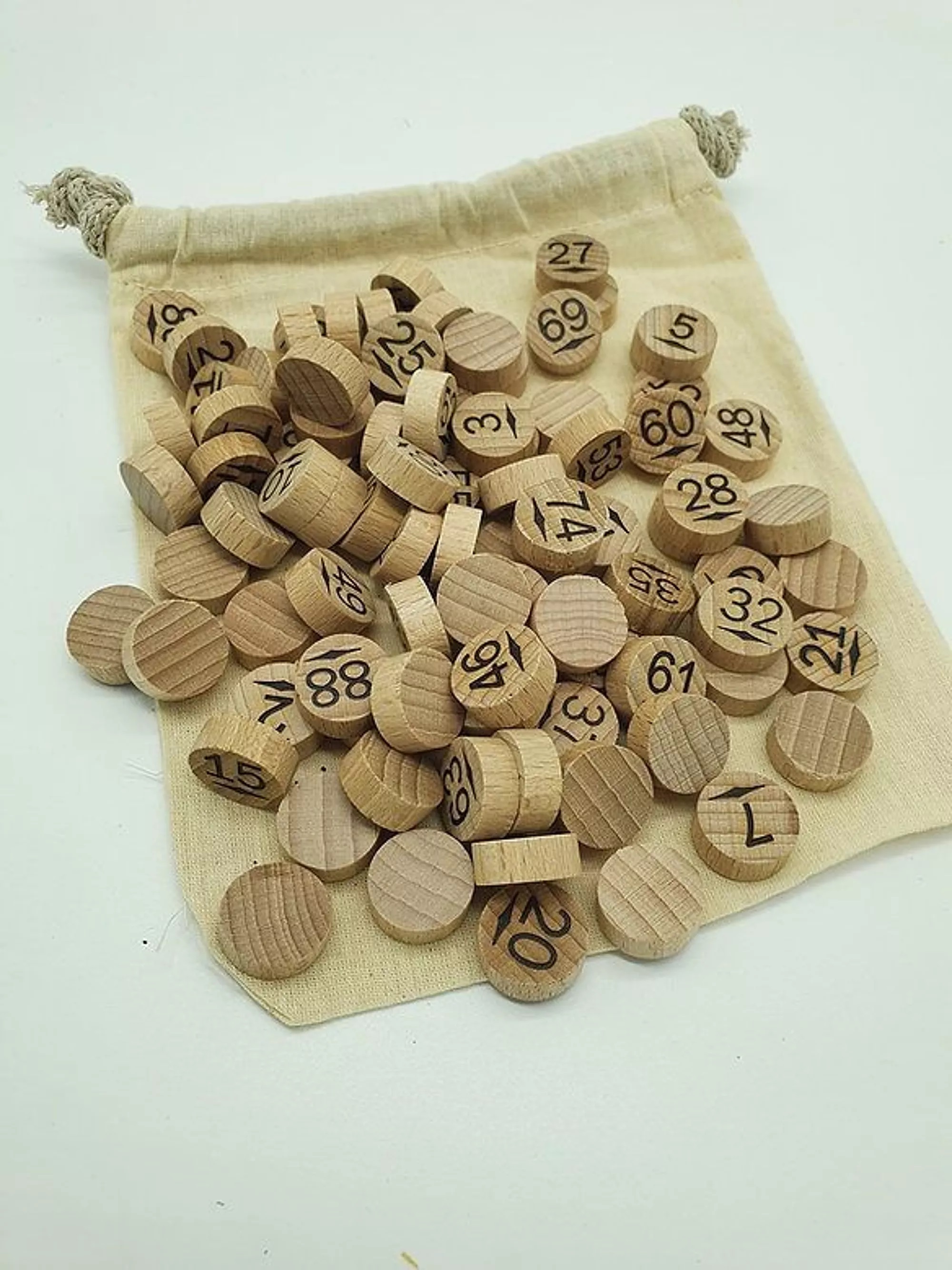 Pions en bois de hêtre du Jura & sachet en coton bio