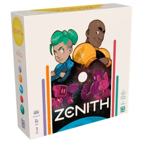 Zénith est un jeu tactique conçu pour 2 joueurs ou pour 4 joueurs en équipes. Dans cet affrontement stratégique, chaque camp se lance dans une lutte pour s’imposer sur les 5 planètes du système solaire. Pouvoir, diplomatie et développement technologique : toutes les stratégies sont permises pour décrocher la victoire.