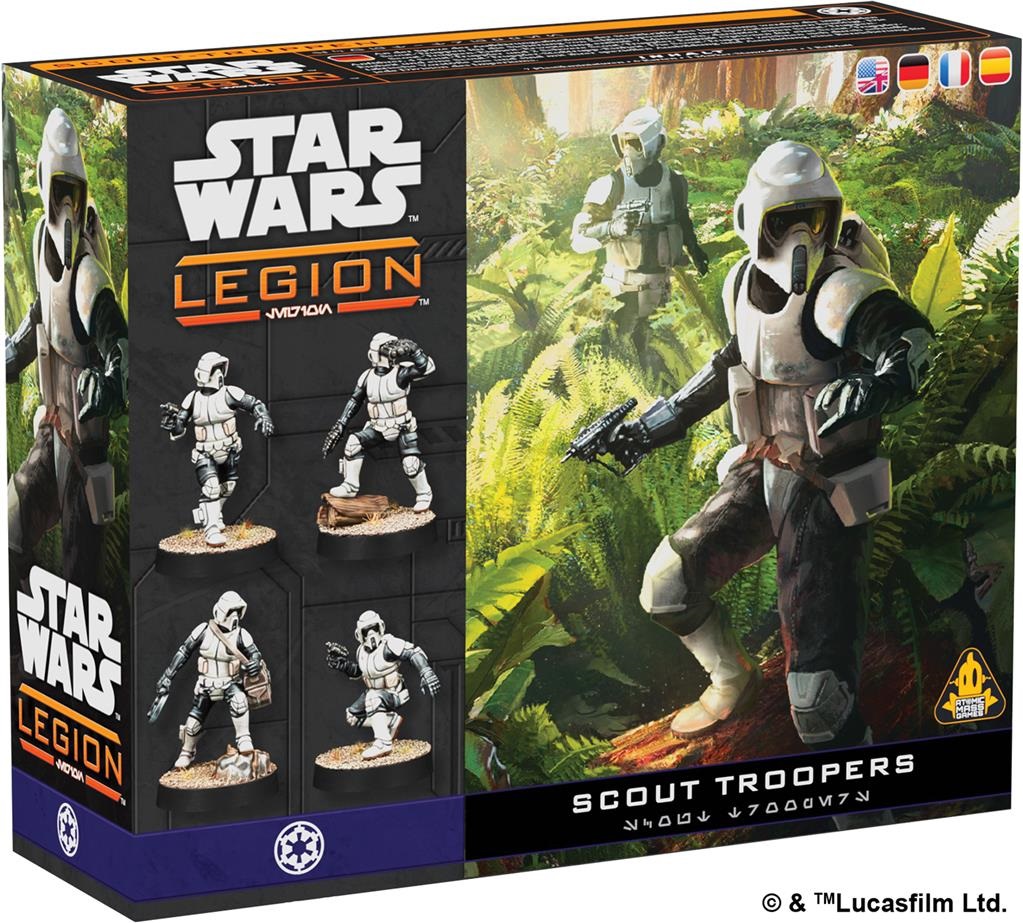 À la tête des unités de reconnaissance des forces de l’Empire, les Scout Troopers Impériaux sécurisent les positions clés et effectuent des missions sensibles. L’extension d’unité Scout Troopers contient 7 figurines, dont 1 Chef Scout Trooper, 4 Scout Troopers et 2 Scout Troopers avec des armes lourdes, qui vous permettront de constituer une unité de Scout Troopers et une unité de Groupe de Combat Scout Troopers. Leur entraînement spécialisé et leur équipement de pointe, ainsi que leurs tactiques d’intervention fulgurantes, en font d’excellents atouts pour toutes les armées Impériales.