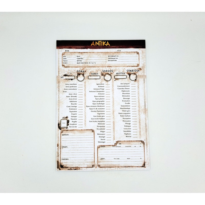 BLOC NOTE 50 fiches de personnages vierges - Extension ANTIKA