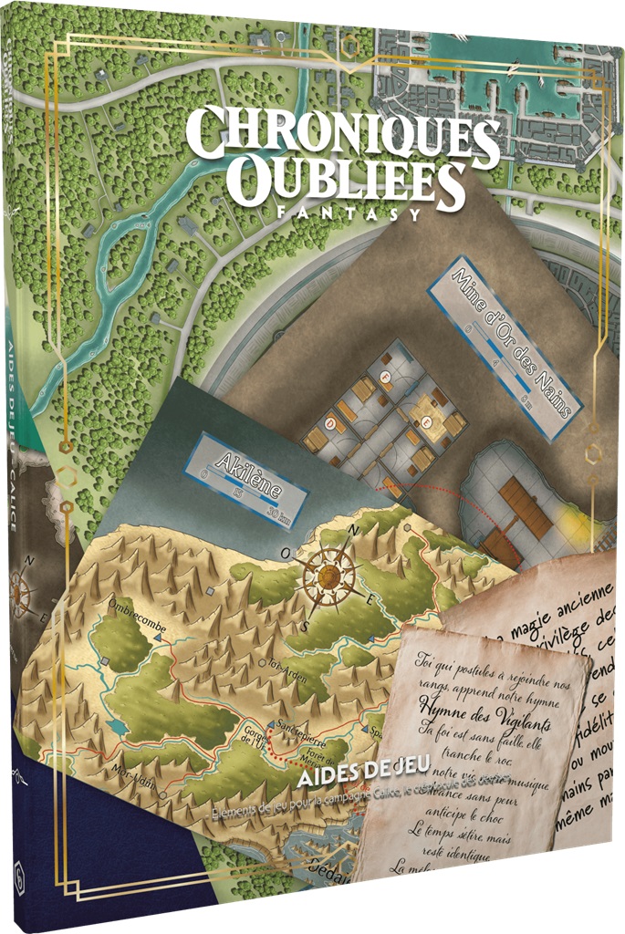 La trousse à outils indispensable pour la campagne de la seconde édition de Chroniques Oubliées, Calice le crépuscule des déesses (tomes 1 et 2). Cette pochette contient 6 plans en couleurs format A3, 16 plans et cartes format A4 et 13 lettres et parchemins réunis sur 8 feuilles A4.