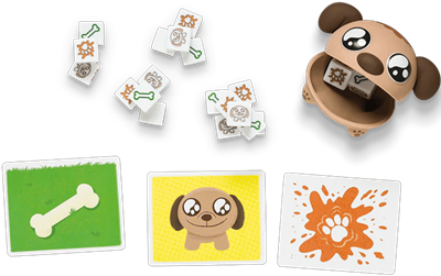 Chaque joueur commence avec le même nombre de dés. Mélangez-les dans le Doggy Shaker, puis révélez vos résultats pour tenter de vous débarrasser de vos dés avant tout le monde.